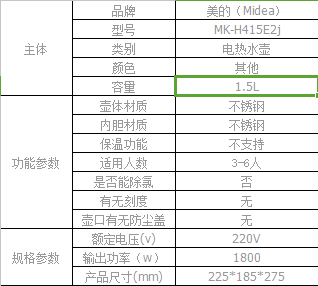 当前位置:首页 > 电气设备-生活用电器-电热水壶(停用) > 美的 电热水壶 H415E2j
